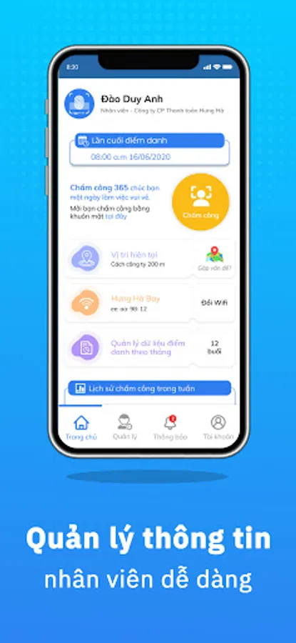 The 365 Attendance App was created to help businesses completely solve all the obvious problems from the timekeeper, giving both business owners and employees peace of mind when managing related issues. to timekeeping. Therefore, this timekeeping app becomes an application capable of storing and controlling data sources from Vietnam's leading timekeeping activity.