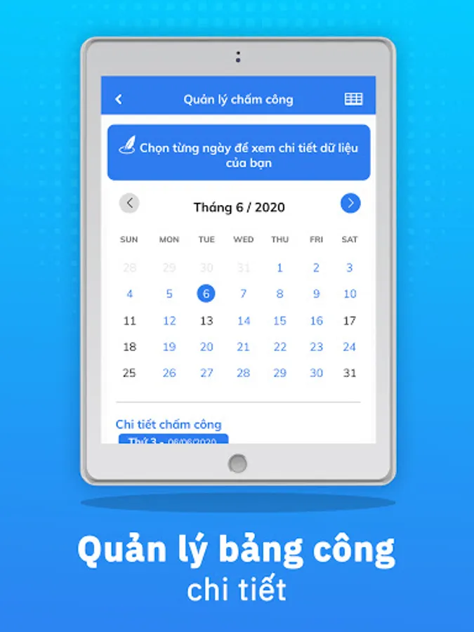 This Time Attendance App will clearly display the attendance information of each employee in such states as punctuality, late time, and days off and you can use the status filter to search.