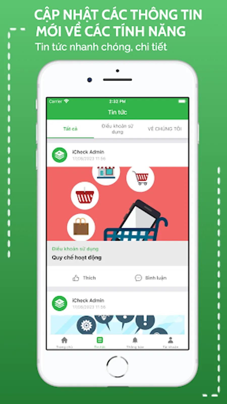 iCheck App Admin is an Application used to manage the store system right on the phone very easily: