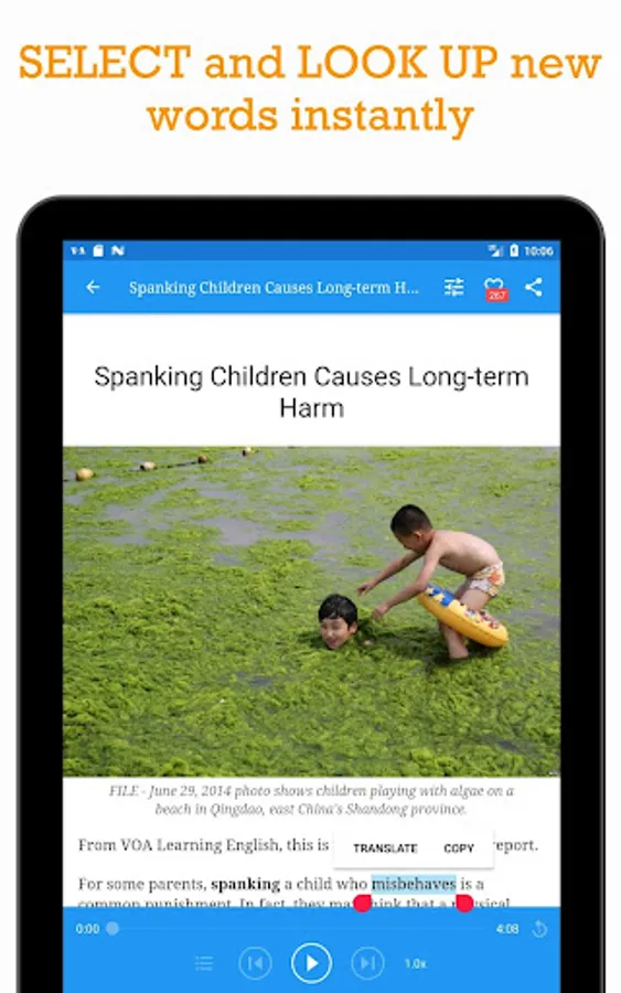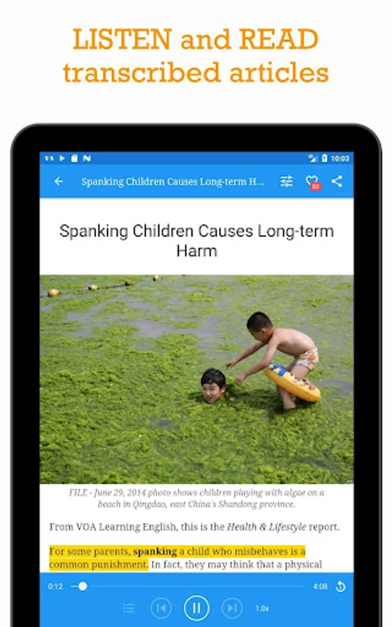 This app is designed to bring you best experience to improve your English. You can read, listen and watch the lessons everywhere with your mobile devices. Even if you are already good at English, you can also learn more about American culture, history as well as latest news in the world.