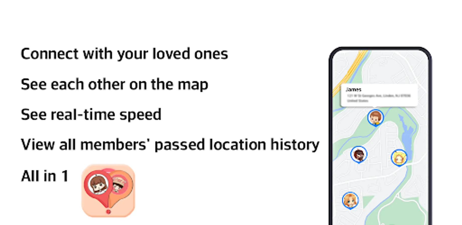 ✓ GPS location sharing with your family members on a family map
