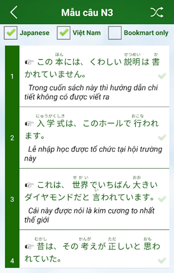 ☞ Grammar guide and help you to remember grammar well through the example of each sentence pattern.