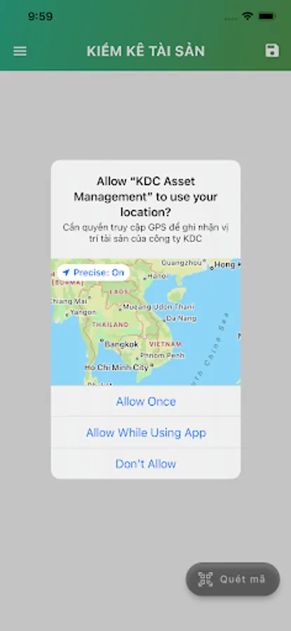 - The app needs GPS access to record asset location.