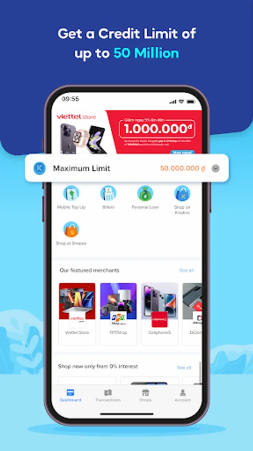 Buy now pay later is an unsecured consumer loan product provided by VietCredit to customers through the Kredivo platform. Customers can use this loan to purchase goods or services or request a cash advance.
