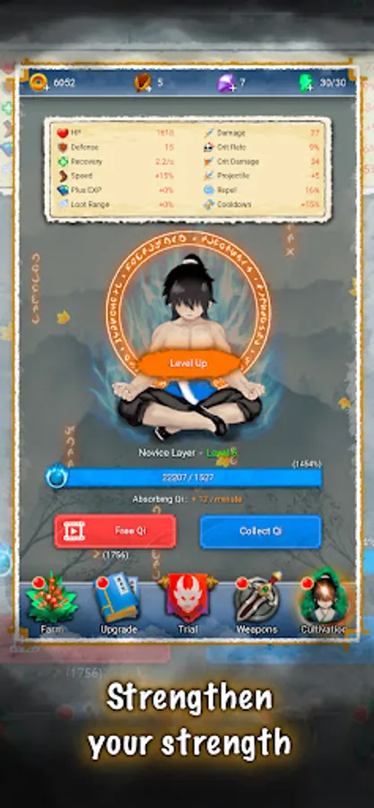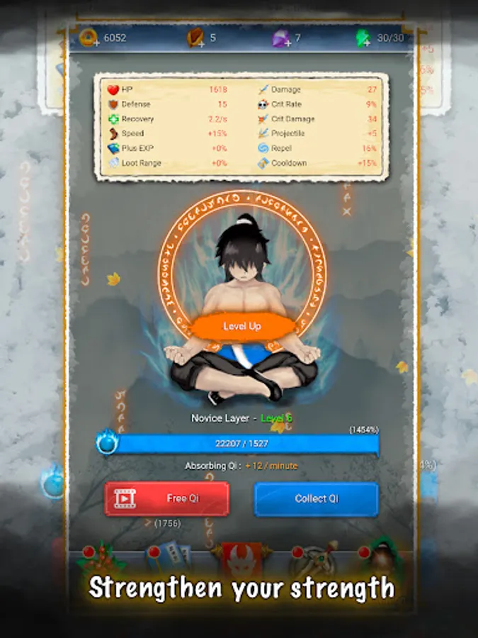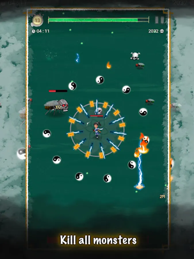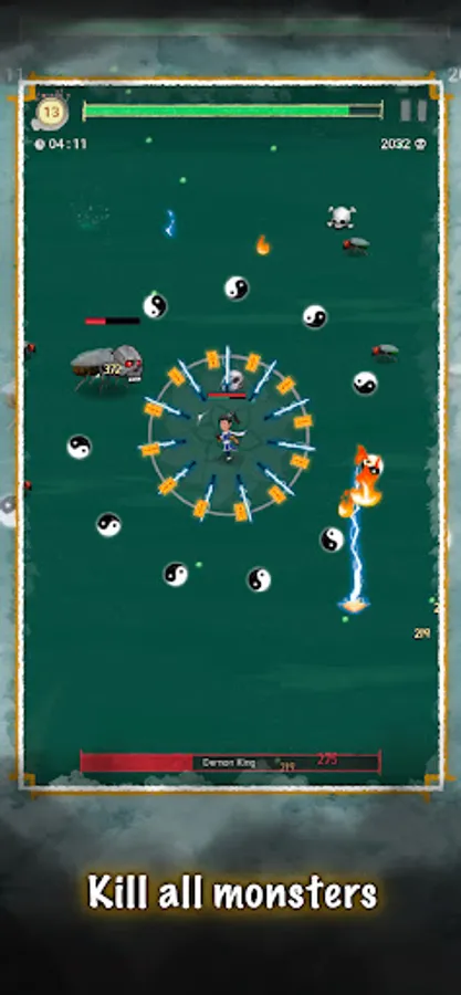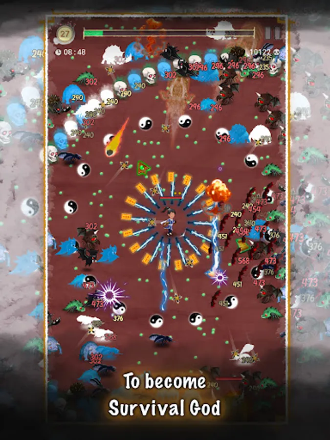 Survival God is a game with an ancient style, set in a fantasy setting in eastern mythology. You will have to challenge and defeat all the monsters on your way. By constantly cultivating your strength, learning more skills, equipping and upgrading your weapons, you will be able to overwhelm all the monsters around you.