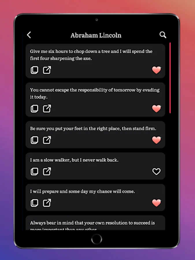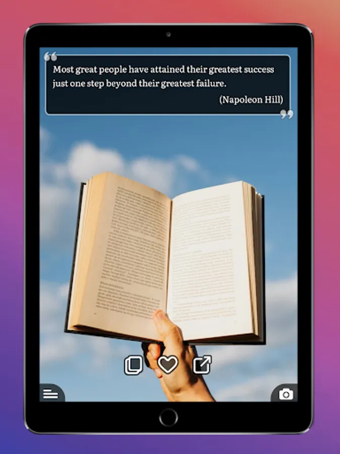 - Easily copy, share quotes, as text, or images to your friends and loved ones. (App will take pictures according to your phone size, you can also use it as wallpaper)