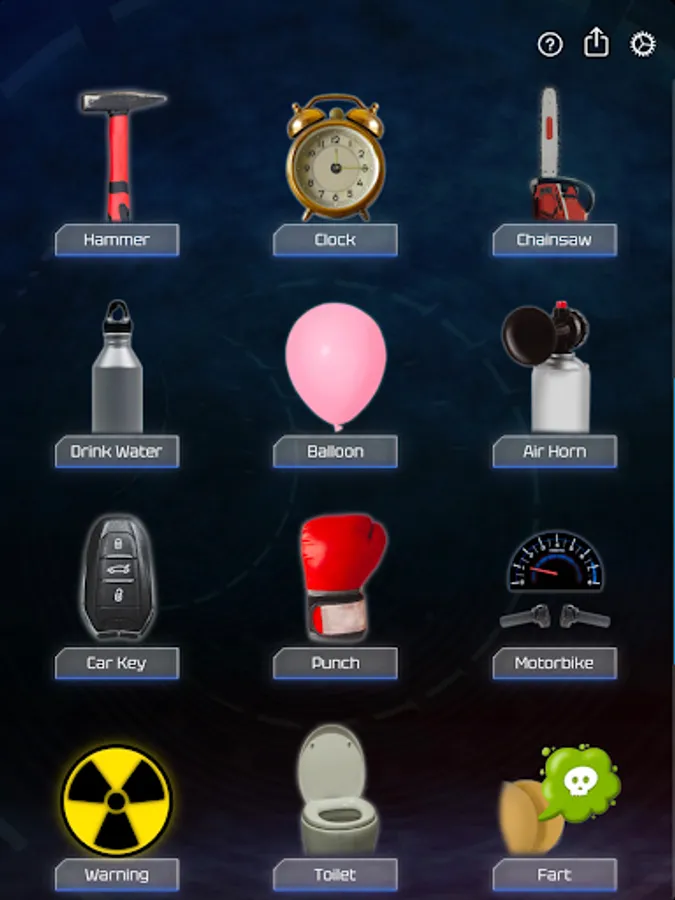 - Lots of funny sounds like fart, air horn, doorbells, breaking glass, and a lots of animals sounds