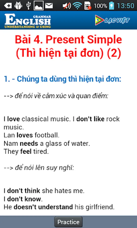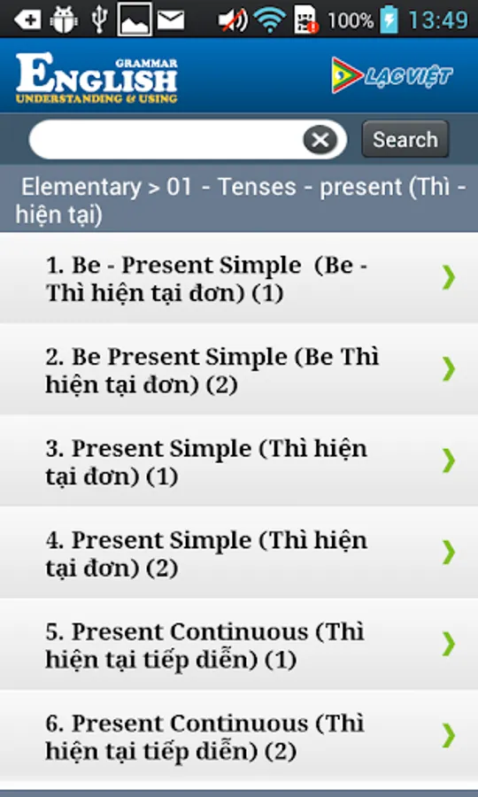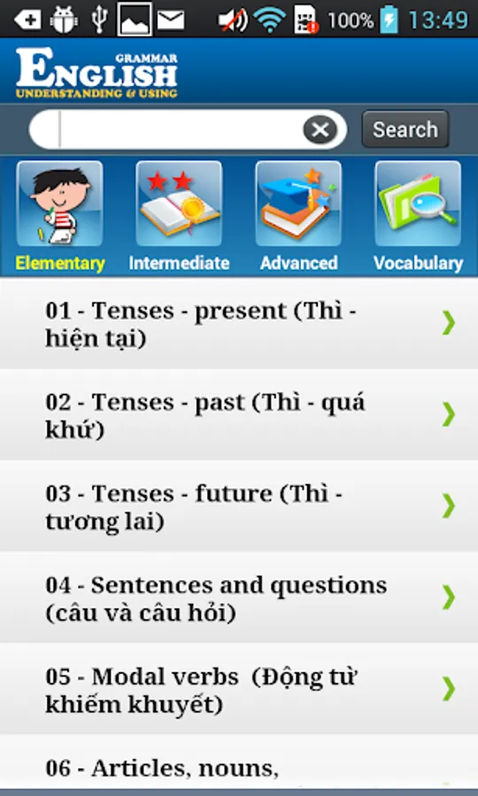 - Lessons are divided into levels: Primary (Elementary), intermediate (Intermediate), Advanced (Advanced). Each level has many different grammar lessons, including formulas and examples for you to imagine how to use grammar easiest.