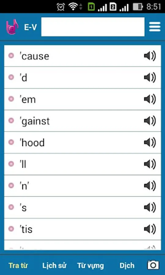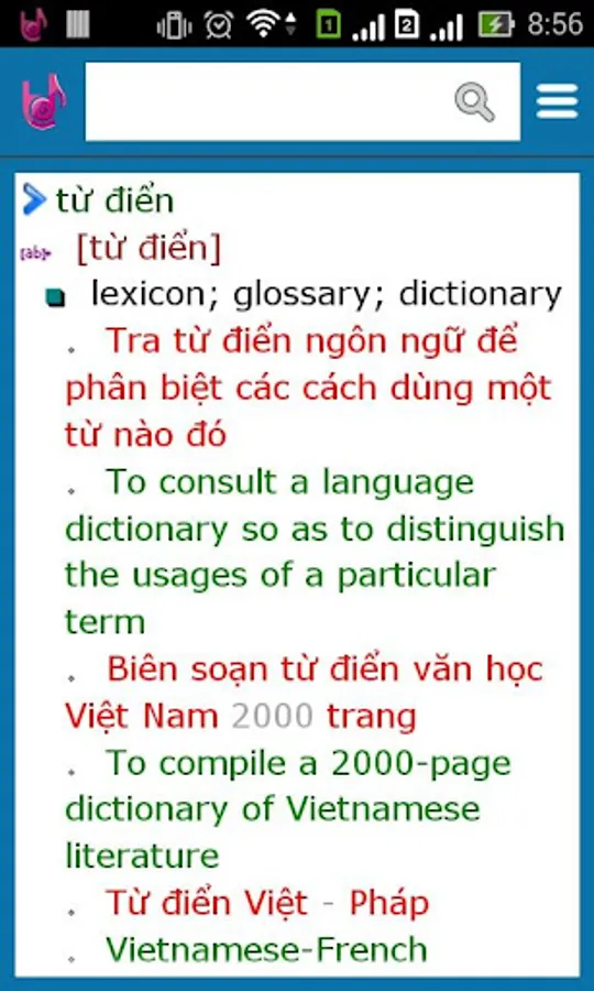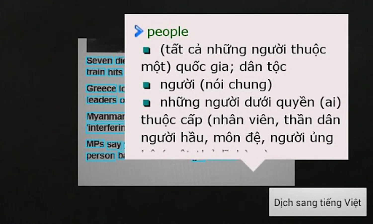 - Cross-references: just one Click and you can see the meaning of the words in the Definition windows (English and Vietnamese), automatically recognizing the compound words.