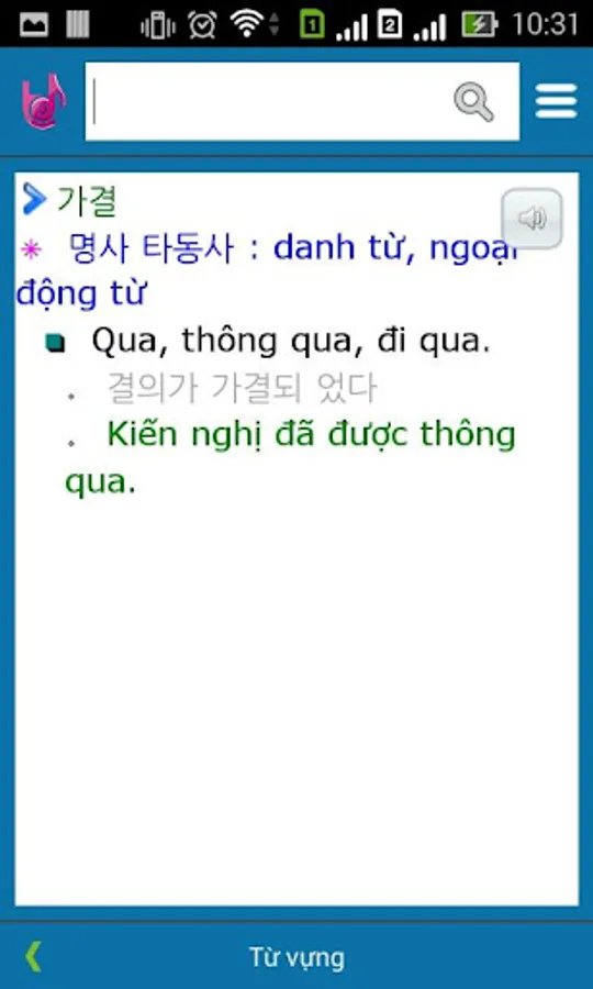 Click on the sound icon to hear every words, phrases and sentences in dictionary.