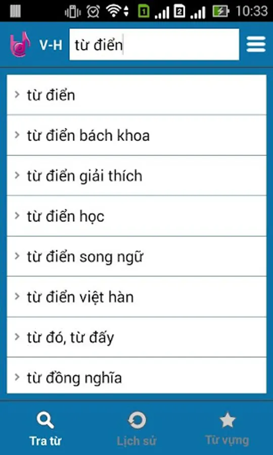 - Cross-references: just one Click and you can see the meaning of the words in the Definition windows (English and Vietnamese), automatically recognizing the compound words.