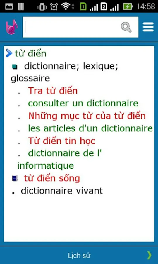 - Cross-references: just one Click and you can see the meaning of the words in the Definition windows (English and Vietnamese), automatically recognizing the compound words.