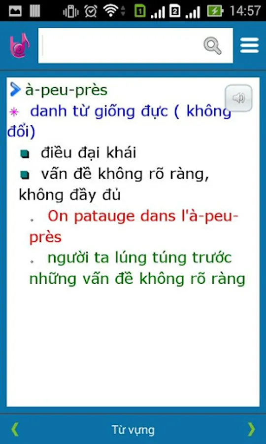 Click on the sound icon to hear every words, phrases and sentences in dictionary.