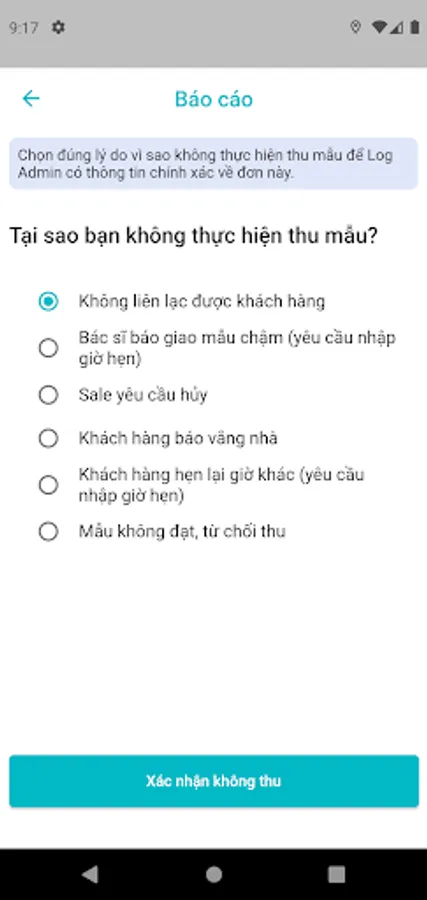 Ứng dụng giao nhận mẫu xét nghiệm.