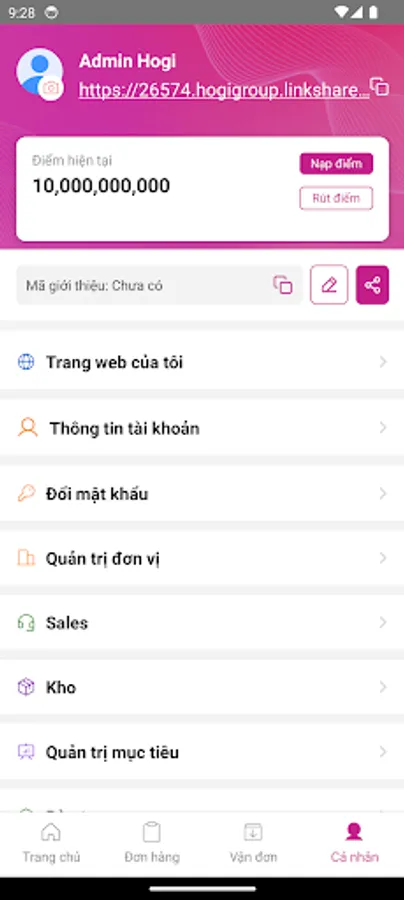 The application allows collaborators to register for personal sales without spending money, fresh money as soon as the order is successful, and automatically have a personalized sales website.