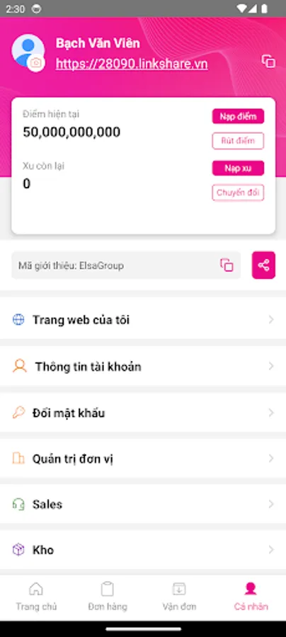 The application allows collaborators to register for personal sales without spending money, fresh money as soon as the order is successful, and automatically have a personalized sales website.