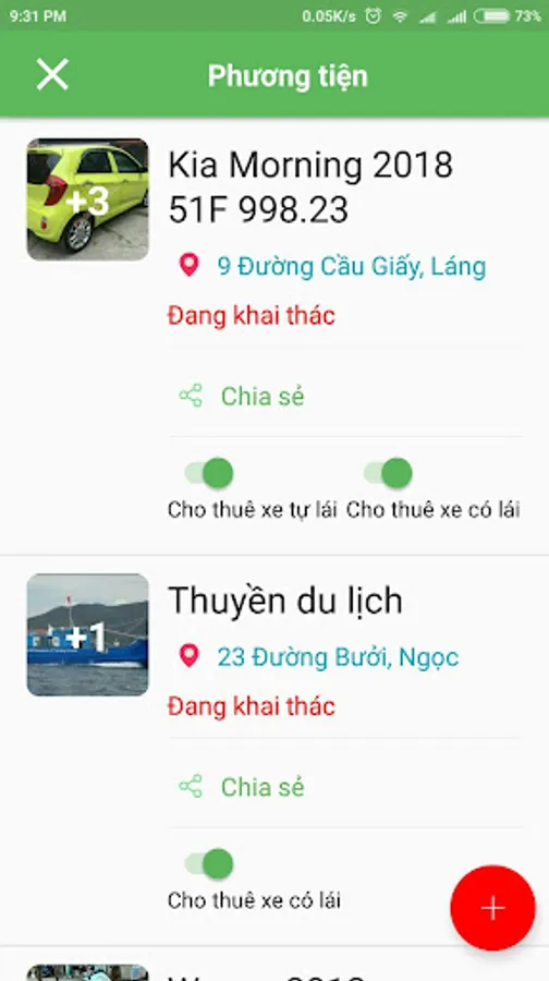 - Working mode: improve income by posting vehicles rental information (cars, motorbikes, bicycles, trucks, tricycles, boats) in two driving modes and self-driving. Customers search and rent cars right in the area you travel every day.