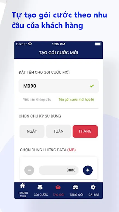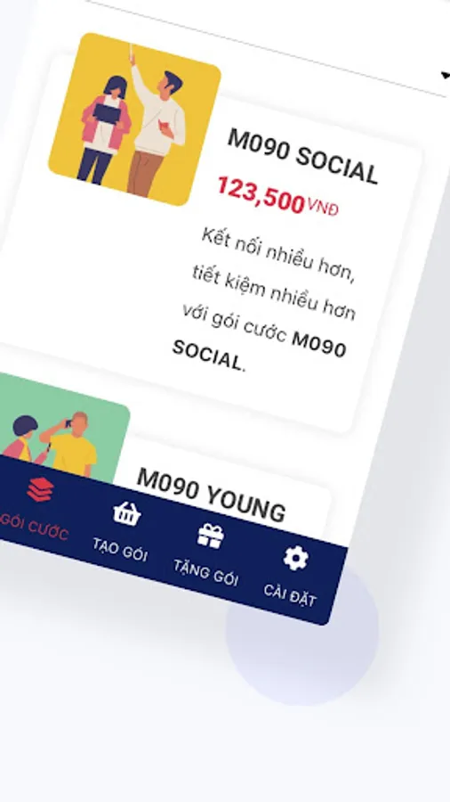 With M090 application, Mobifone customers can create their own packages with the prices of each component as follows: