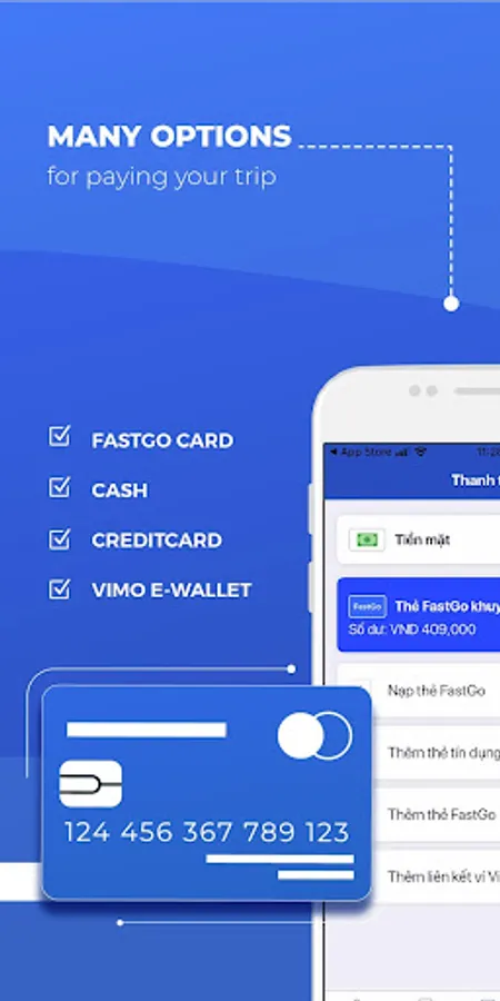 • FastPay: The diversity of payment methods (cash, credit card, or e-wallet,….) and just with FASTGO card, you can pay all FASTGO service and accumulate Fast point for each time.