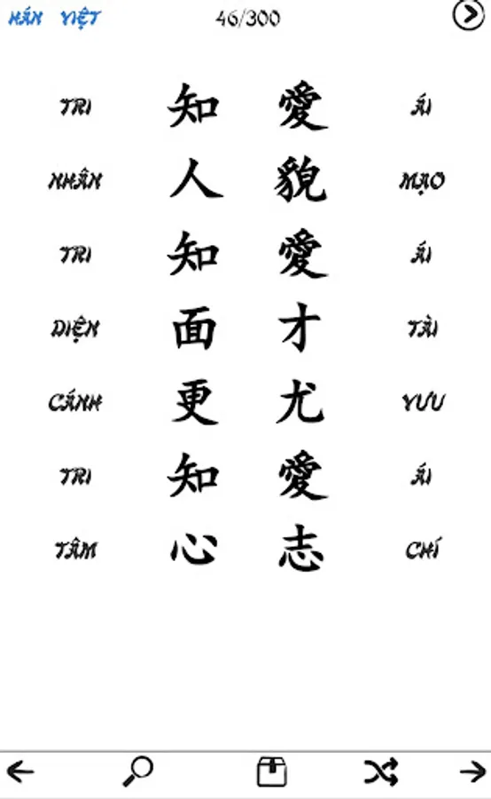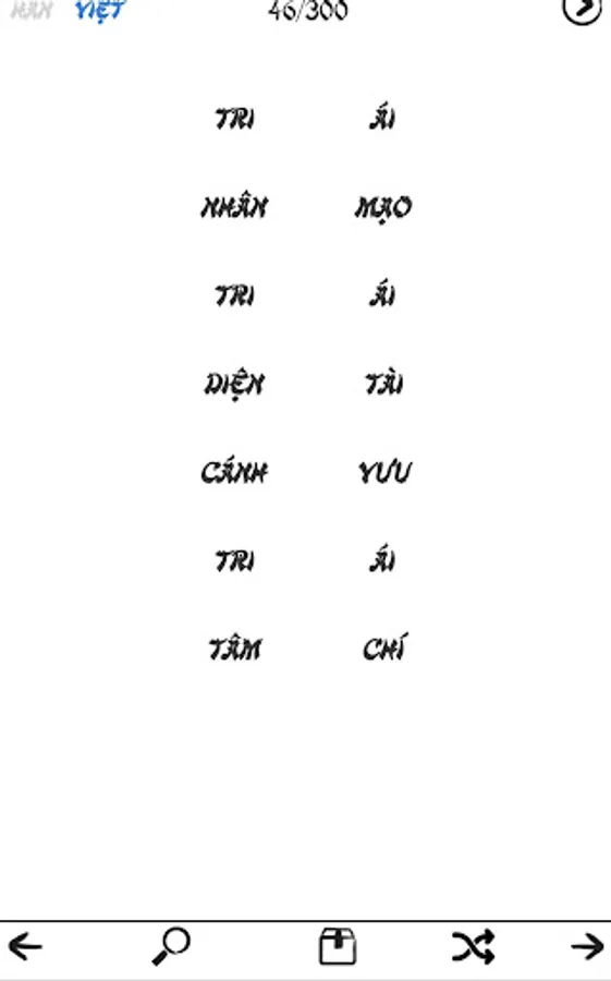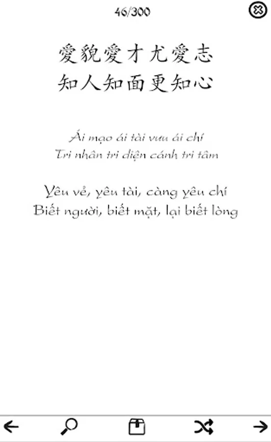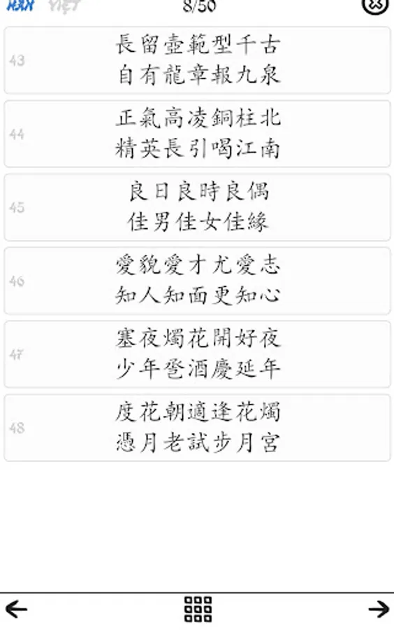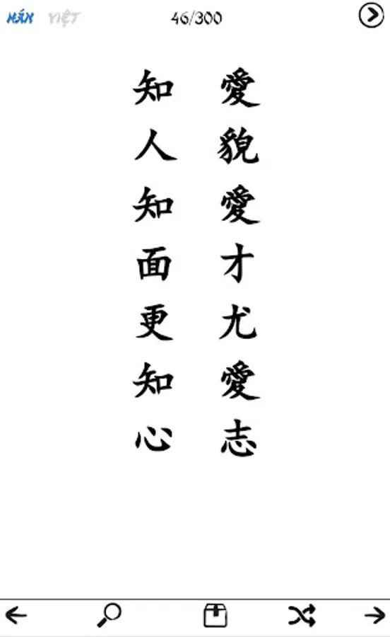 Displays the contents of 300 couplets Chinese characters in order from easy to difficult