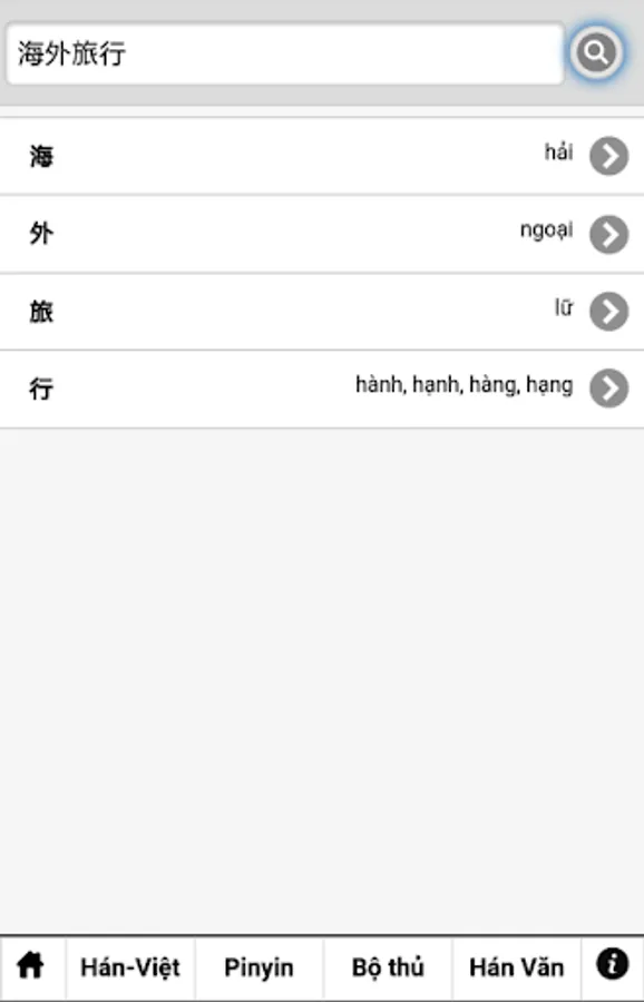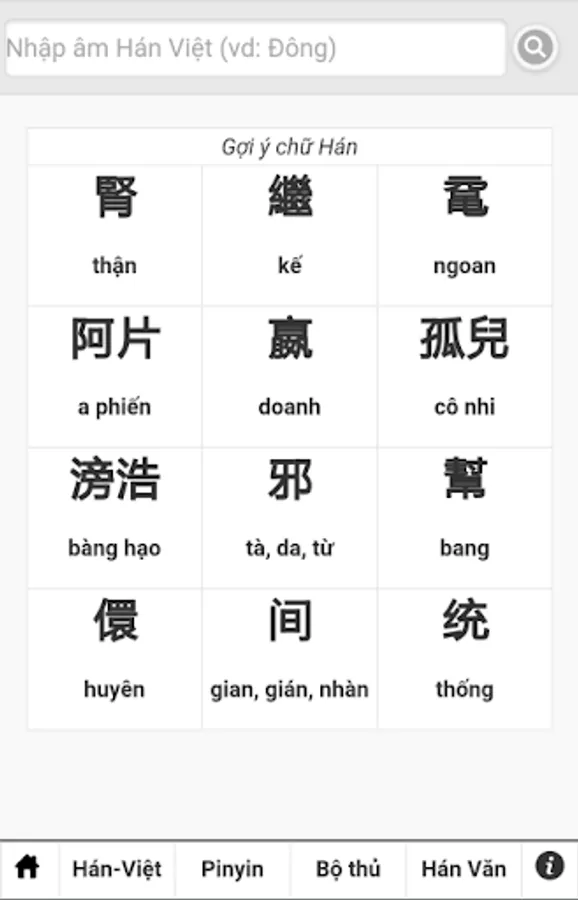 Nhằm những mục tiêu đó, chúng tôi tổng hợp các tư liệu Hán Việt thành 1 ứng dụng duy nhất để các bạn có thể tiếp cận lại với Hán Việt một cách tiện lợi nhất.