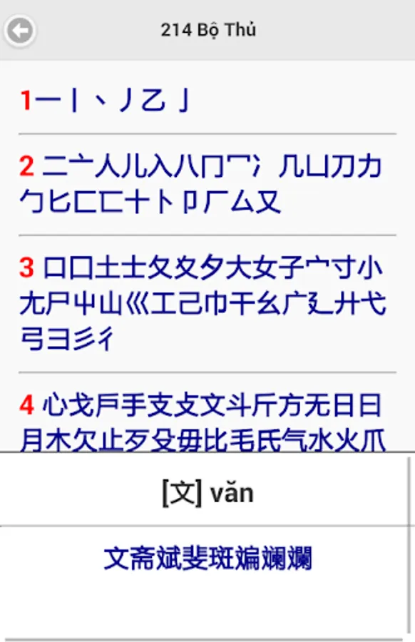 Bộ Hán Văn Tuyển Chọn có thể tra nhanh chữ Hán bao gồm