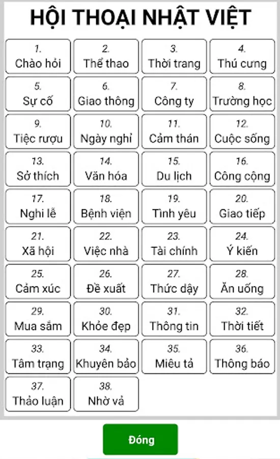 Listening Japanese sentence patterns conversation Vietnam are categorized by topic.