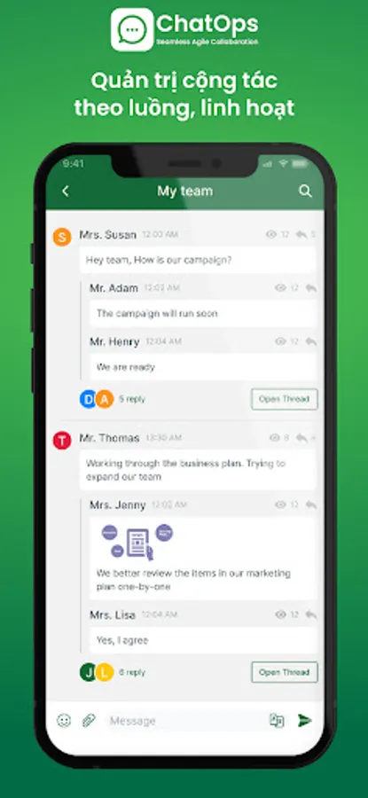 ChatOps - the leading enterprise seamless communication collaboration platform, is a digital workspace. ChatOps provides a full range of communication features that make work collaboration seamless, flexible, with the right information in the right work channel, with the right person at the right time. The platform that promotes human-human and human-machine collaboration deeply applies AI and Machine Learning to enhance automation and work intelligence towards data mining for quick decision-making. ChatOps offers 4 main features: