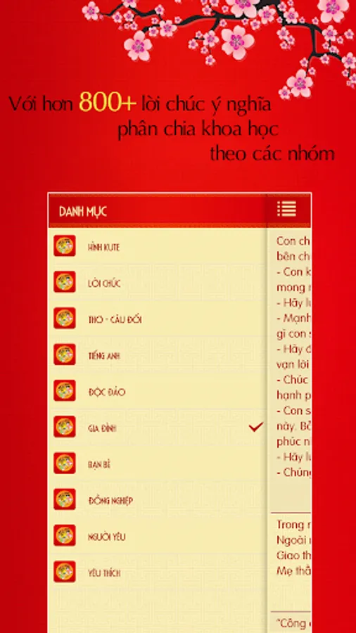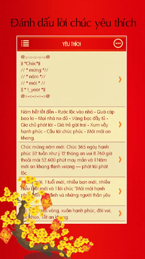 - Hỗ trợ đánh dấu các mẫu lời chúc yêu thích