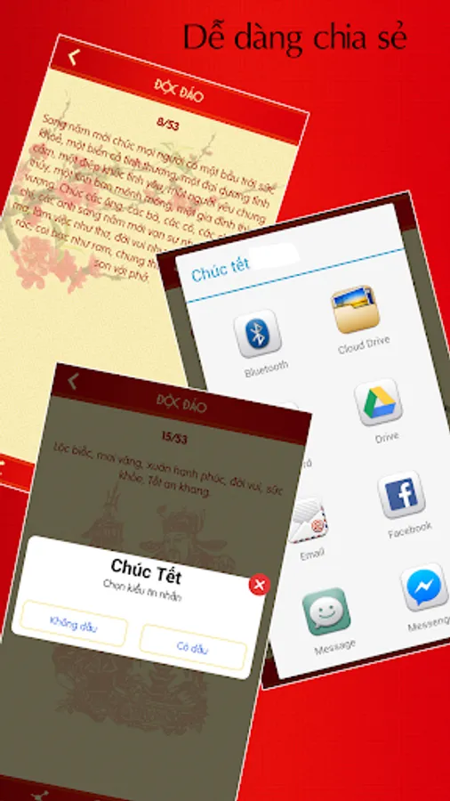 - Dễ dàng chia sẻ với bạn bè, người thân qua Facebook, Zalo, Viber, Mail, SMS ...
