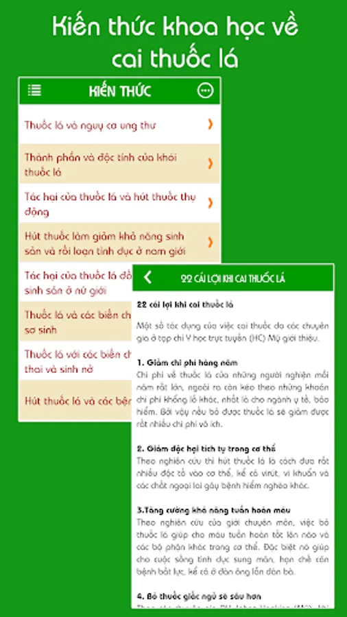 "CAI THUỐC LÁ" LÀ ỨNG DỤNG HỮU ÍCH CHO NHỮNG BẠN MUỐN CAI THUỐC LÁ; ỨNG DỤNG CUNG CẤP PHƯƠNG PHÁP CAI THUỐC HIỆU QUẢ NHẤT HIỆN NAY. TẢI NGAY ĐỂ CÙNG TRẢI NGHIỆM!