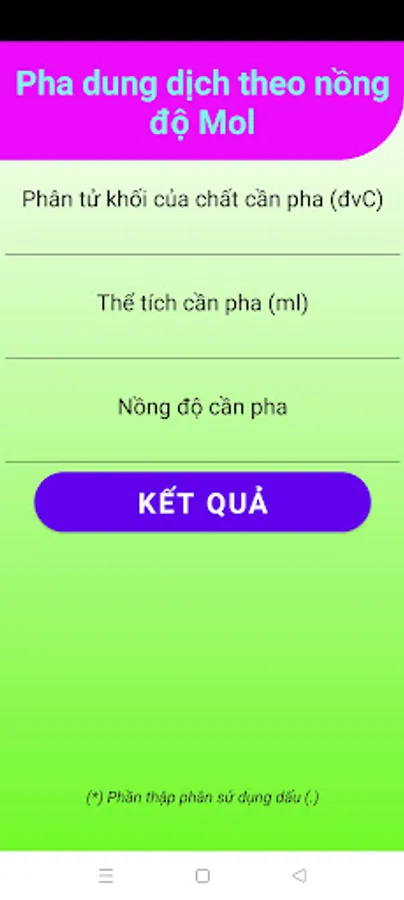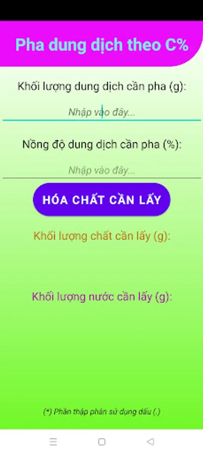 Users only need to enter the information and requirements when they want to prepare the solution according to the desired percentage, molar concentration, ... then the software will calculate and give 100% accurate data.
