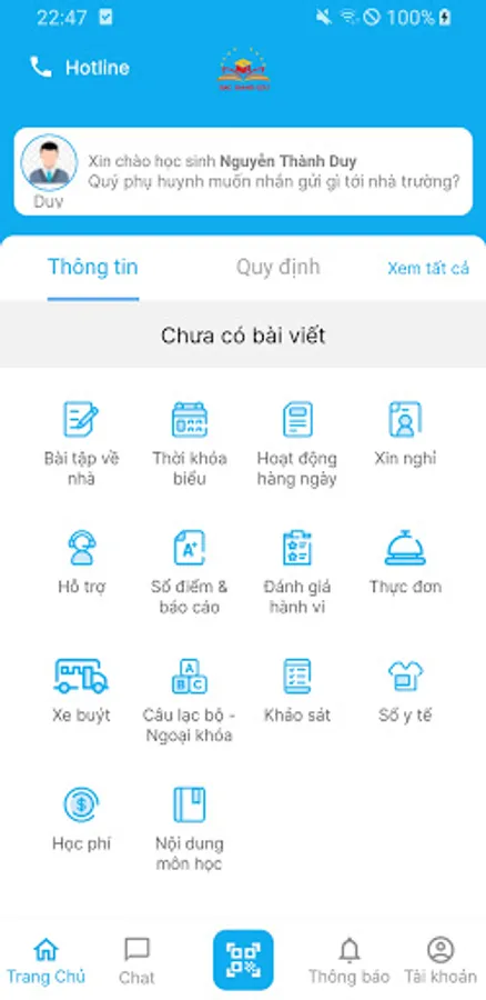 Parents mobile application of Bac Giang's Smart School Interactive System to promptly update the trend of the 4.0 era. internships, announcements from the School