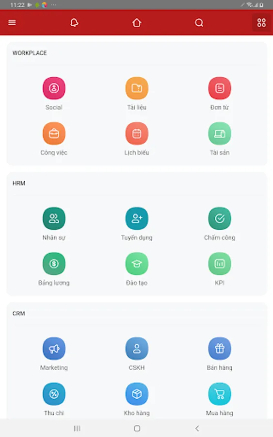 Social networking, HR, Assessment and Application from, Tasks, Documents, Properties, Schedule.