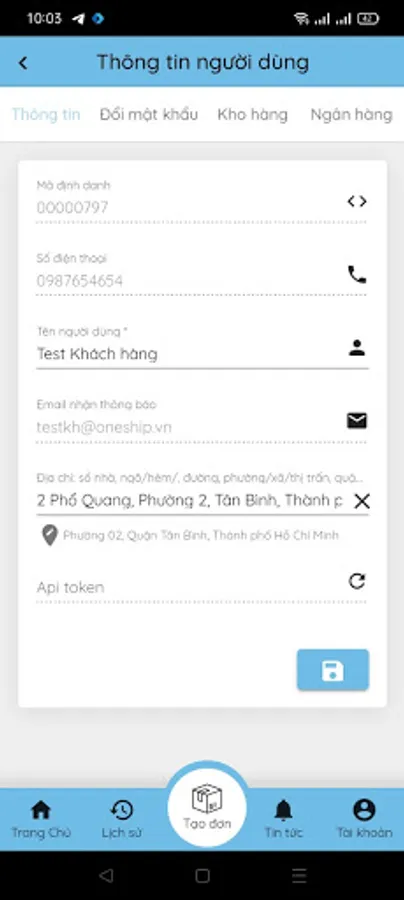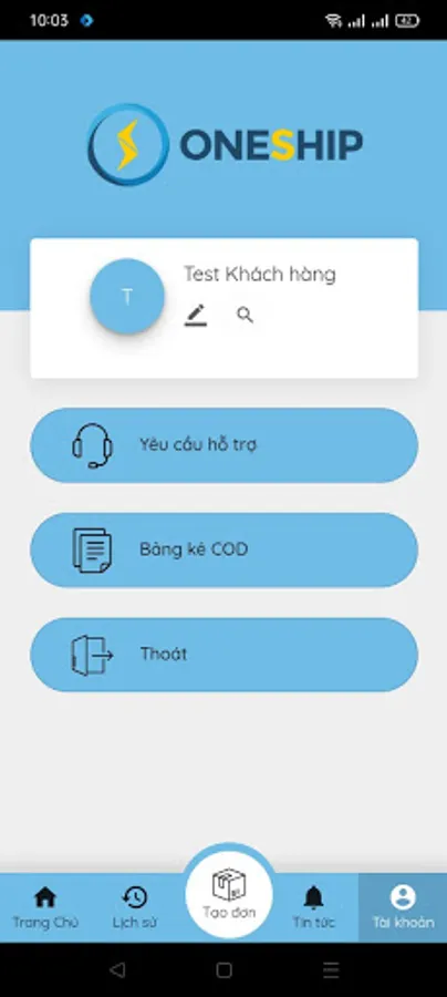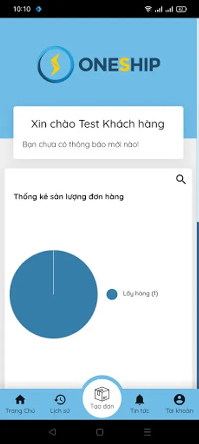 Order management application for customers using OneShip service, including features: