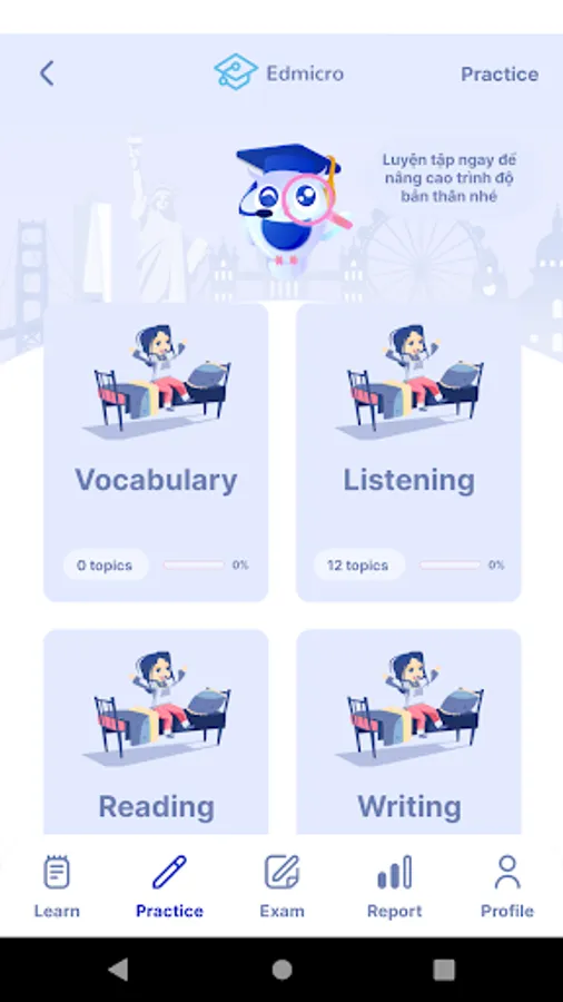 Edmicro IELTS - ứng dụng học IELTS tích hợp AI giúp bạn rút ngắn một nửa thời gian, gấp đôi hiệu quả, tiết kiệm tới 90% chi phí luyện thi IELTS với các tính năng:
