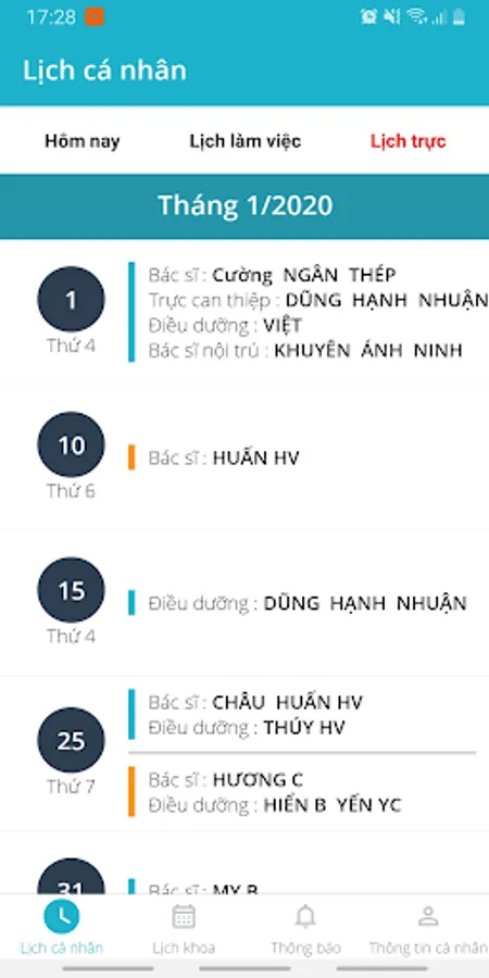 Ứng dụng quản lý lịch làm việc và đổi ca cho nhân viên trong bệnh viện