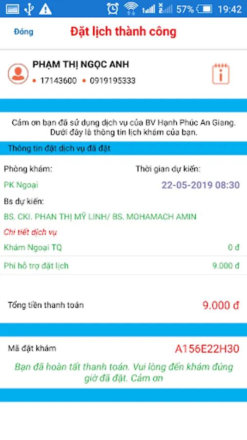 + Helping users who are customers can book appointments; quick search of medical history; information of electronic patient card usage at the hospital; find your way according to the map of the hospital; Stay up to date with the latest news and announcements from the hospital.