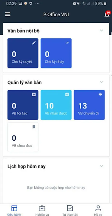 Mobile application of Electronic Office system, deployed by VNI Aviation Insurance Joint Stock Corporation.