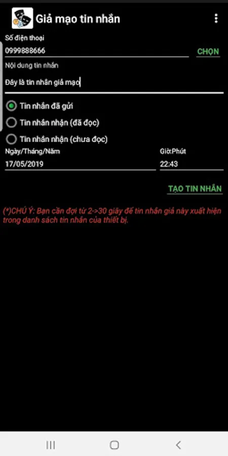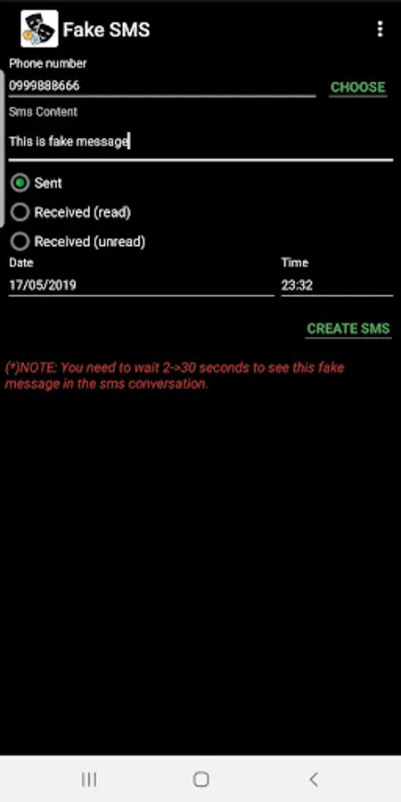 With Fake SMS, you can create free fake SMS from your friends, your family,... You can choose the date/time, the sms types: Sent, Received (read), Received (unread),...