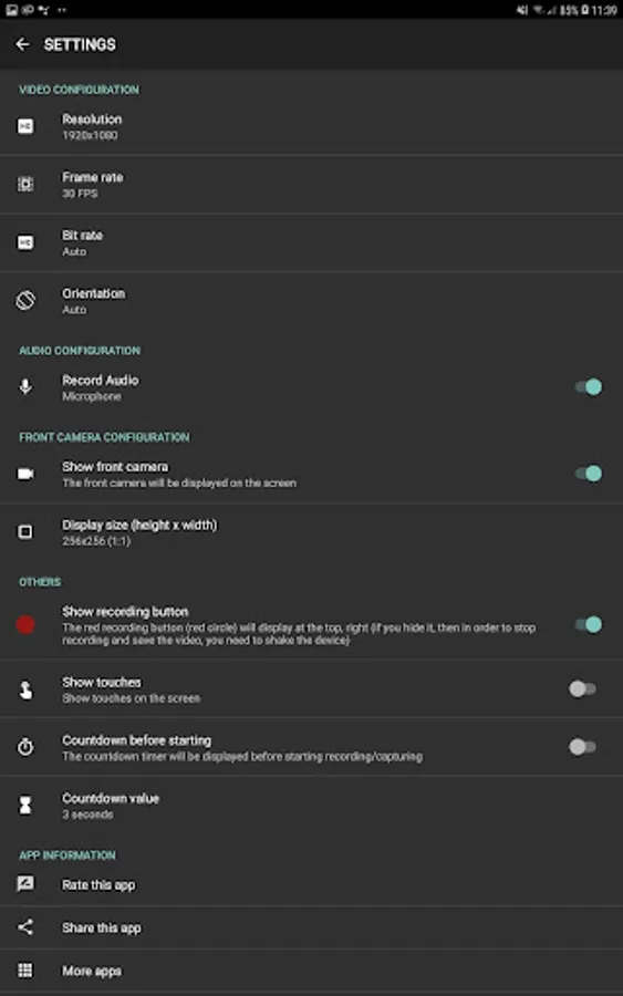 - Allow to configure Frame rate (20 FPS, 30 FPS, 60 FPS, ...).
