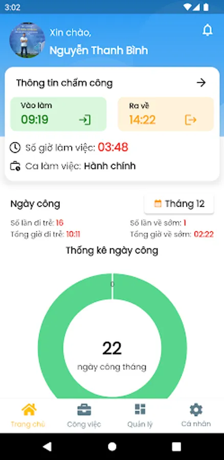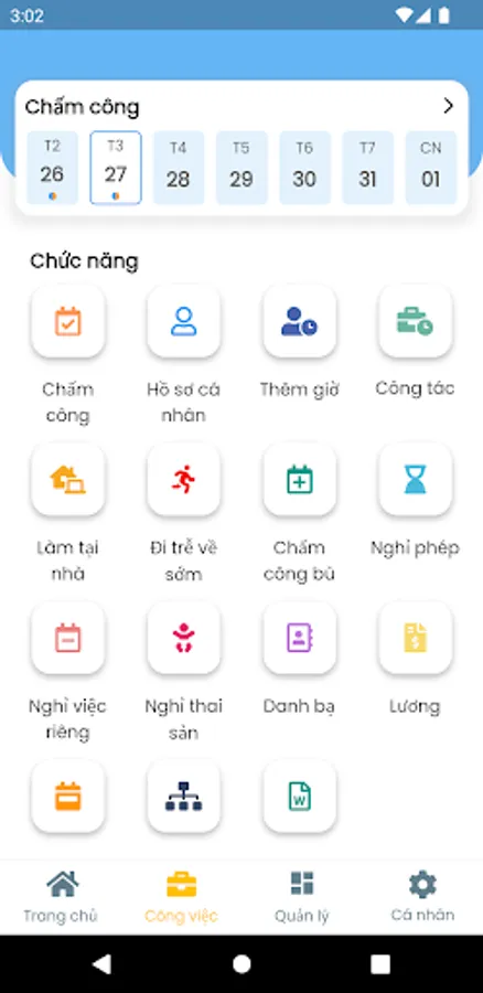 V-TimeK application, supporting enterprises in human resource management, includes the following main functions: