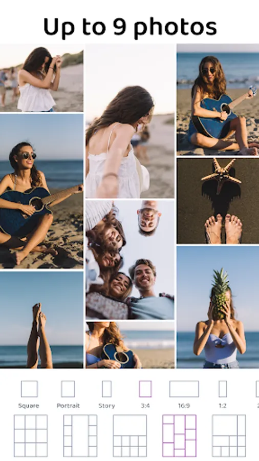 ● Craft stunning pic collages by merging up to 9 photos using our collage maker.