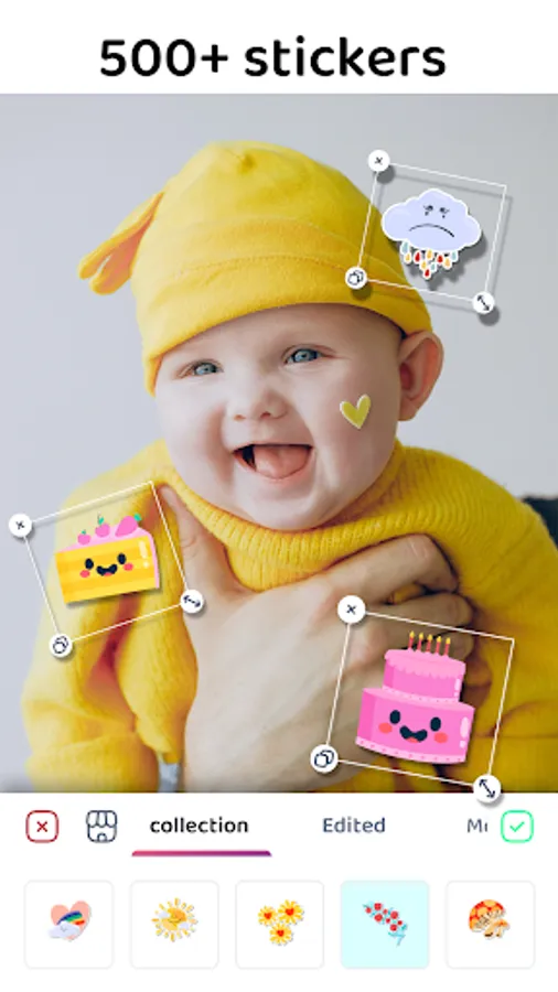 🌟 Unlock Limitless Creativity with 500+ Stickers: Make your pic collage unique with playful icons, trendy elements, and more. Express your style and have fun exploring our vast sticker collection in the photo editor.