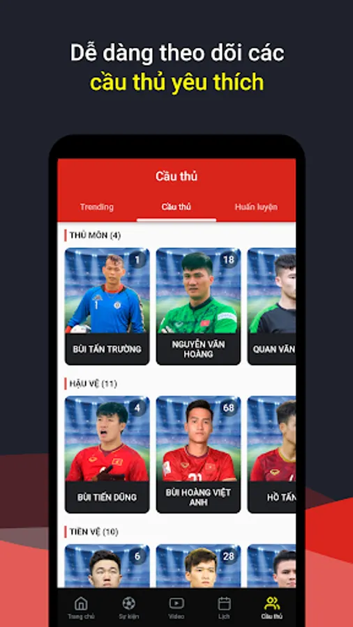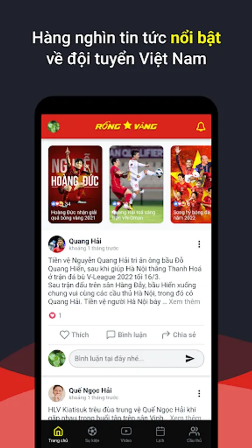 The application shares information about football and the Vietnamese football team among fans. Information shared in the form of news, videos, podcasts, livestream events.