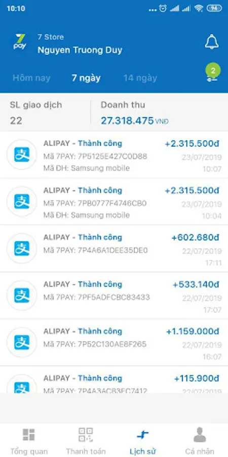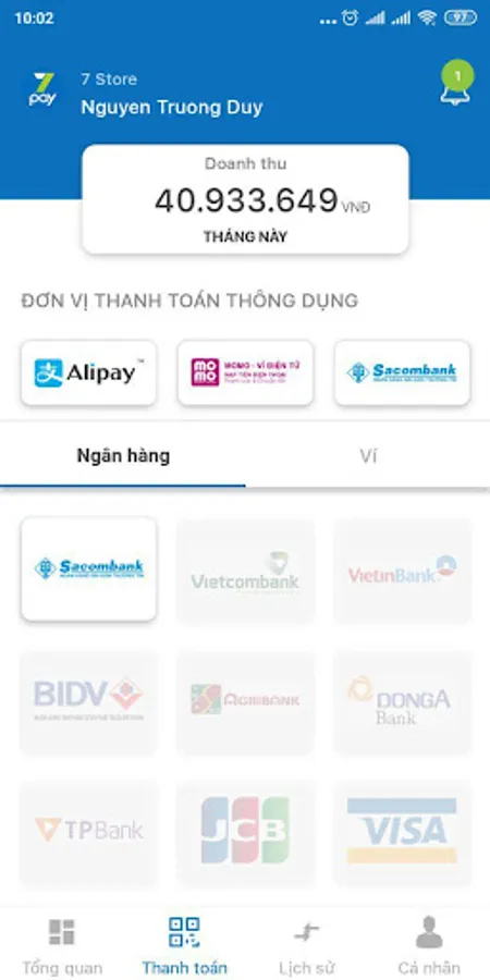Is the first unit providing a multi-channel payment integration application. Connecting with 7Pay, customers who pay QR Code at your store will not have to hesitate about having no appropriate payment gateway. 7Pay application will accept payment from various payment channels of different payment units (such as: Ipay, Sacombank Pay, Momo, Visa, Masterpass, JCB, UnionPay ...)