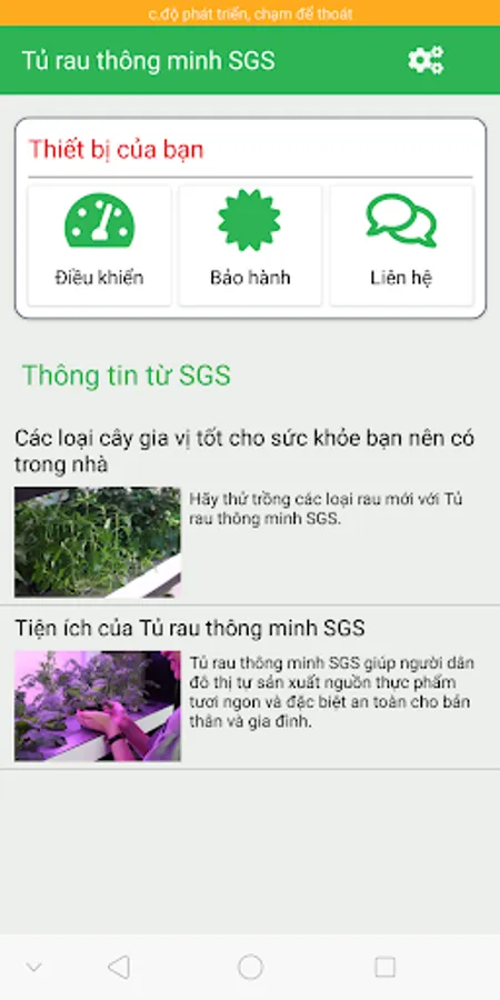 Control application of SGS Smart Vegetable Cabinet, help you grow vegetables right in the house without sunlight. Smart soil technology, a dedicated irrigation and LED pump system that is automatically operated to help you grow vegetables is simple, with little effort and very successful results.
