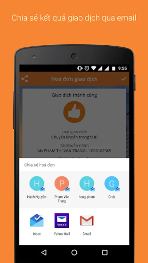 - Transfer instantly to another SHB's account and another bank's account.