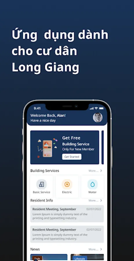 Application for residents of Long Giang Group to use services where they live or work. Connecting residents and the Management Board, reducing time, improving interaction efficiency, providing and deploying services for the Investor and the Management Board for residents in the area.