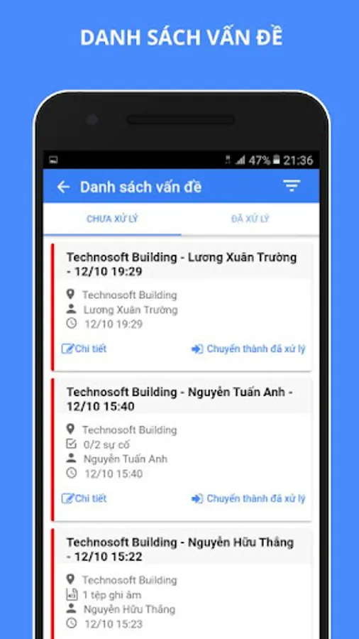 - Receiving information, a report on the issue, the problem arises in real time